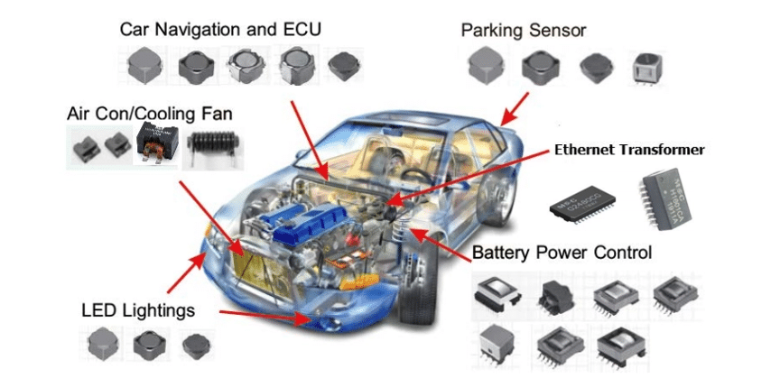 The application of electronic components in the automotive field enhances vehicle performance and intelligence, driving the development of automotive technology and changes in modes of transportation.