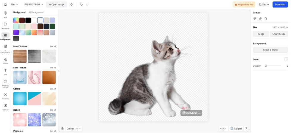 Using insMind, users can extract or remove the existing backgrounds from their images. After this, you can choose a backdrop from the available options or generate a customized one using AI.