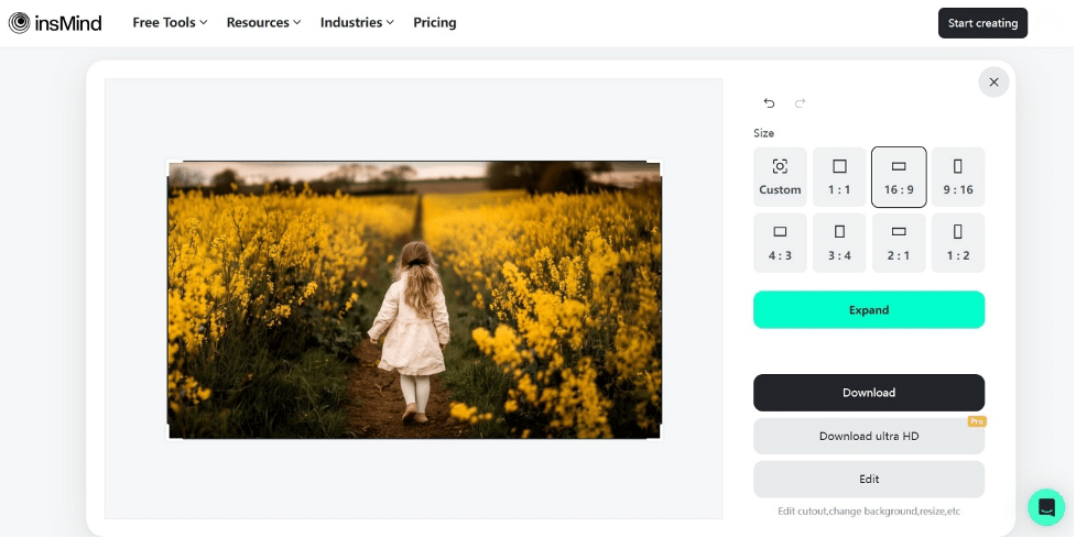 With the help of this AI tool, users can resize and expand their photos effortlessly to fit different platforms. Additionally, you can select from the available aspect ratios for your images according to your needs.