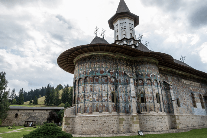 • Moldovita Monastery: This monastery stands out with its well-preserved frescoes that cover both the interior and exterior walls. The Siege of Constantinople is one of the most notable scenes depicted here.