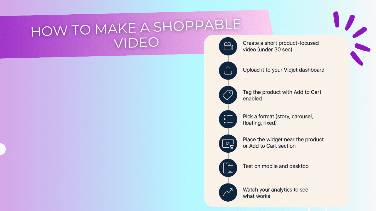Tools like Vidjet help you add videos fast. You don’t need to code anything. Just upload and go.