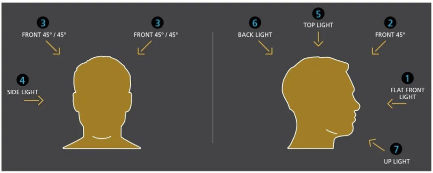 The front light is positioned directly in front of performers, at eye level or as close to it as possible. This lighting angle is rarely used for facial illumination. In most theatres, lights installed on the apron or front-of-house bridges fall into this category.