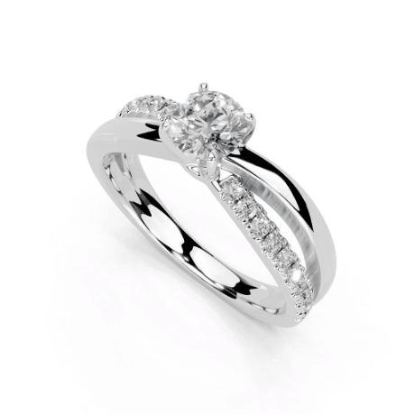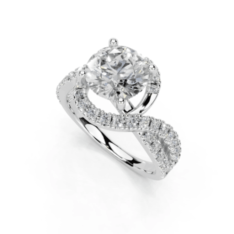 The twisted destiny ring is a true masterpiece, featuring a bypass design where the band elegantly twists around the round-cut lab-grown diamond. This unique setting adds a touch of vintage charm while maintaining a contemporary feel. The bypass design symbolizes two lives intertwining, making it a meaningful choice for an engagement ring.