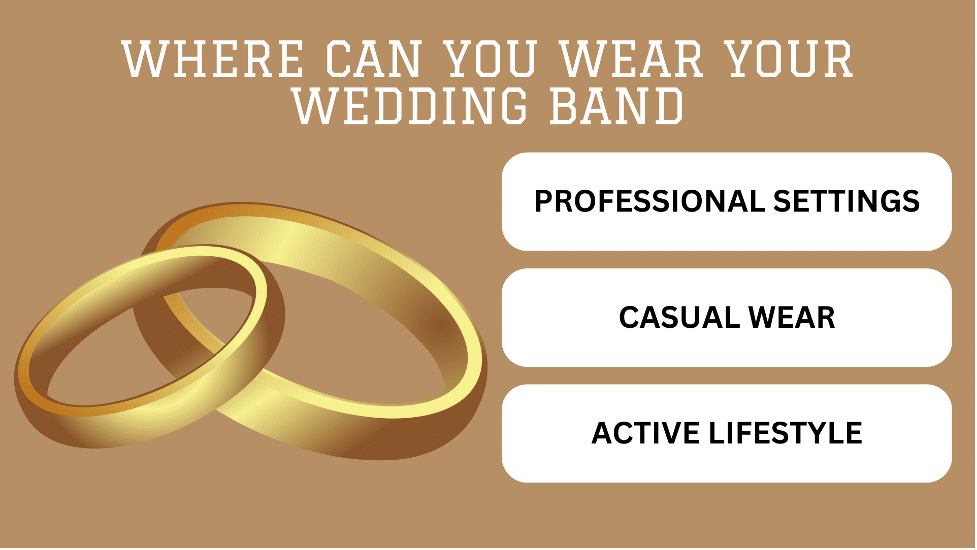Consider the size and shape of your wedding band when choosing other accessories. A wider band is bolder, while a thinner band is more subtle.