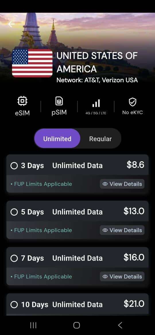 Unlimited data options – available for popular destinations; ideal for heavy users.